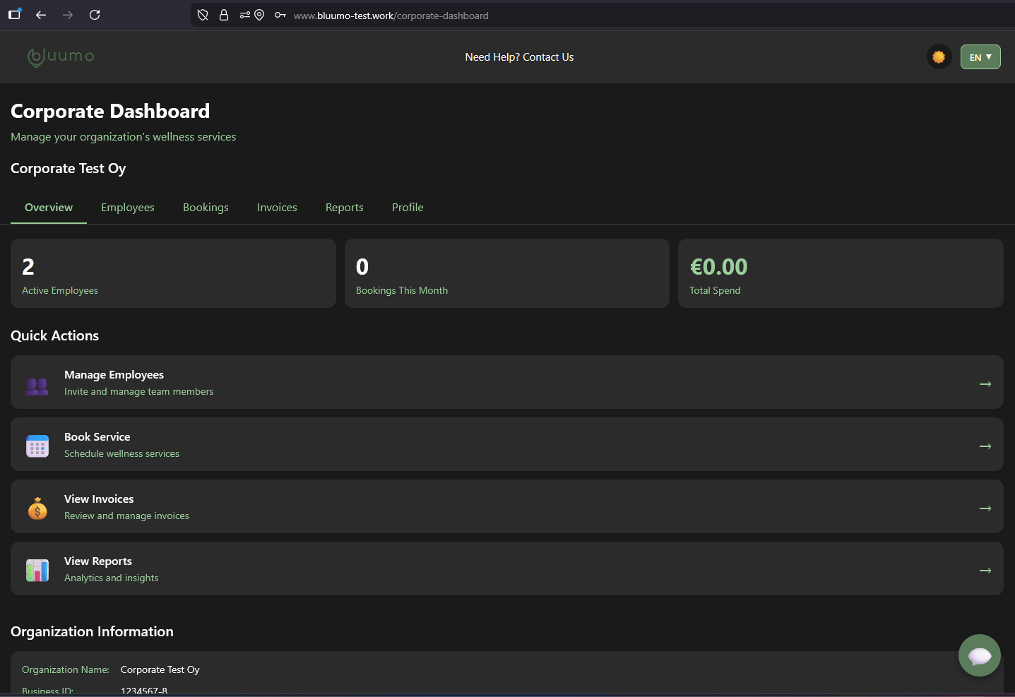 A corporate B2B portal for companies booking wellness services for employees